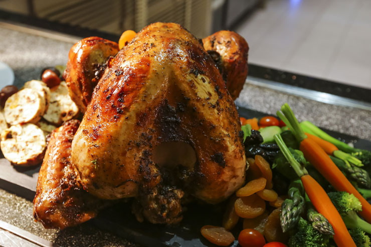 - احشو الخليط داخل الدجاجة وتحت جلد الصدر والفخذين.