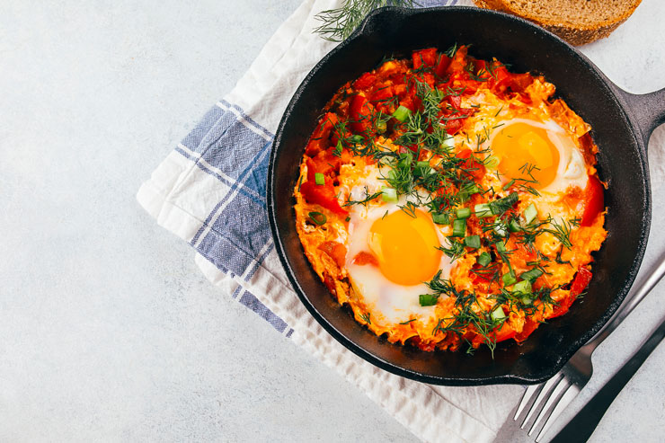 • اصنع فراغات في الصلصة واكسر البيض فيها.
